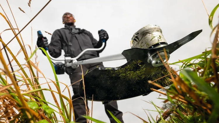 • Narzędzie jest wyposażone w ostrze do wykaszarek, szpulę Pro-Tap, wytrzymałą aluminiową obudowę silnika z wygodnymi rozwiązaniami do przechowywania oraz podwójne szelki.