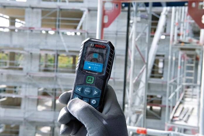 • Zielona plamka lasera umożliwia szybsze i łatwiejsze namierzanie celu podczas pomiarów przy większych odległościach w pomieszczeniach