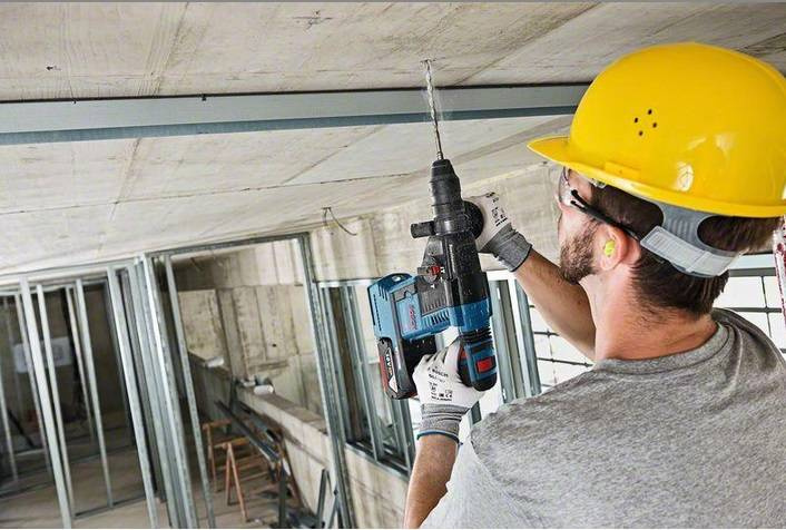 - Efektywny silnik Bosch EC, dzięki któremu na jednym cyklu ładowania akumulatora (4,0 Ah) można wywiercić do 153 otworów w betonie (6 x 40 mm)
