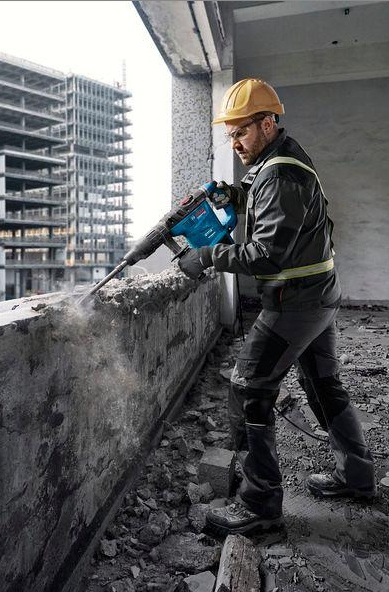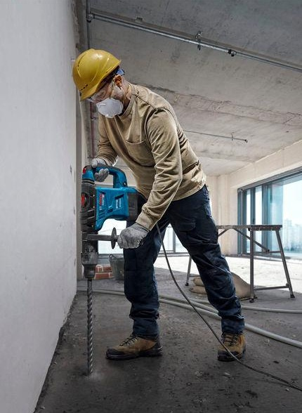• GBH 6-42 C Professional to wszechstronny młot udarowo-obrotowy z uchwytem SDS max, idealny do wiercenia i dłutowania w twardych materiałach, takich jak beton, kamień i mur.