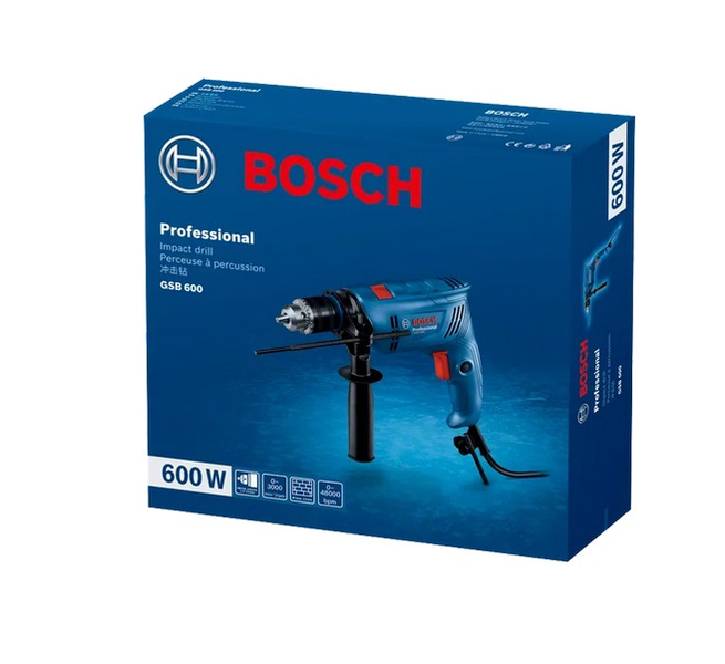 Bosch Wiertarka udarowa GSB 600, 600W, zębaty uchwyt wiertarski, w kartonie