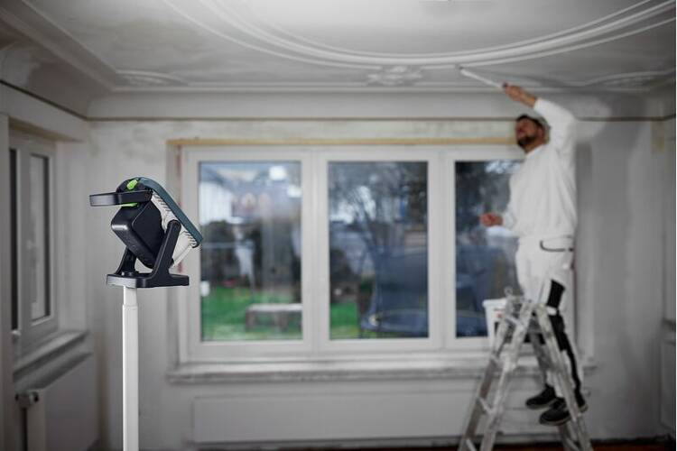 • Kompaktowa, akumulatorowa lampa robocza SYSLITE KBS C zapewnia zawsze odpowiednie oświetlenie, co przekłada się na optymalne rezultaty pracy – zarówno na podłodze, jak i na ścianie czy suficie. Lampa robocza może być ustawiana w różnych pozycjach z możliwością odchylania obudowy w zależności od zastosowania. Dzięki mocy na poziomie 5000 lumenów świeci jasno, emitując światło o barwie zbliżonej do światła dziennego, które w razie potrzeby można bezstopniowo przyciemniać.