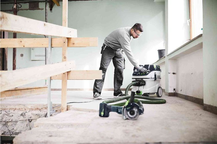 • Zdrowa praca – osłona ssąca transportuje ponad 95% pyłów bezpośrednio do odkurzacza, dzięki czemu idealnie nadaje się do bezpyłowego cięcia materiałów mineralnych we wnętrzach. Otwarta konstrukcja umożliwia dobrą widoczność miejsca cięcia, co ułatwia orientację przy cięciu na rysę. Ponadto osłonę ssącą można łatwo otworzyć, co pozwala na cięcie blisko krawędzi. Szczelnie obudowany silnik EC-TEC i elektronika zapewniają odporność na pył. Dla jeszcze większej wygody, akumulator Bluetooth® automatycznie uruchamia sparowany odkurzacz.