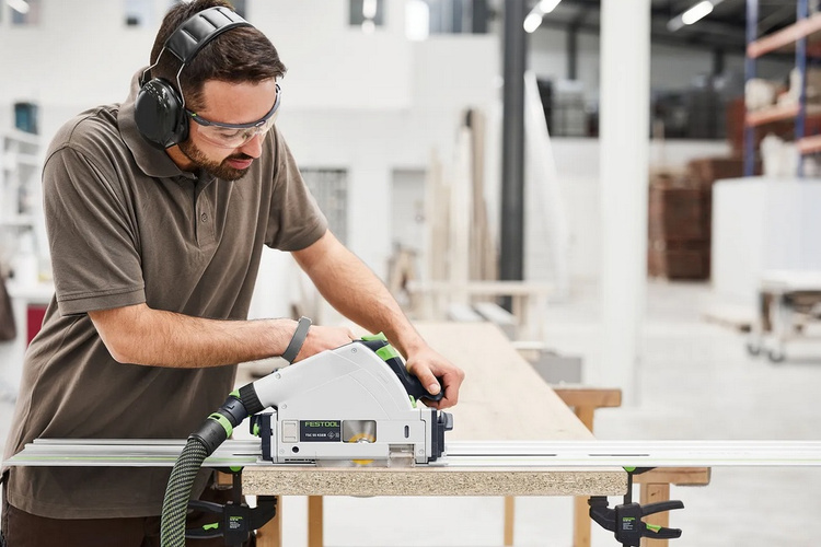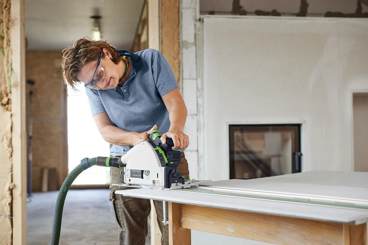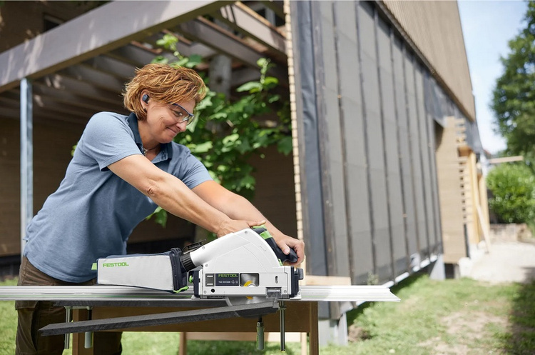 • Komfort podczas pracy z użyciem zagłębiarki podnosi inteligentne wyposażenie systemowe: szyny prowadzące, przykładnice kątowe i stół pilarski zapewniają precyzyjne rezultaty nawet podczas wymagających zastosowań – bez konieczności czasochłonnych przygotowań lub dodatkowej obróbki.