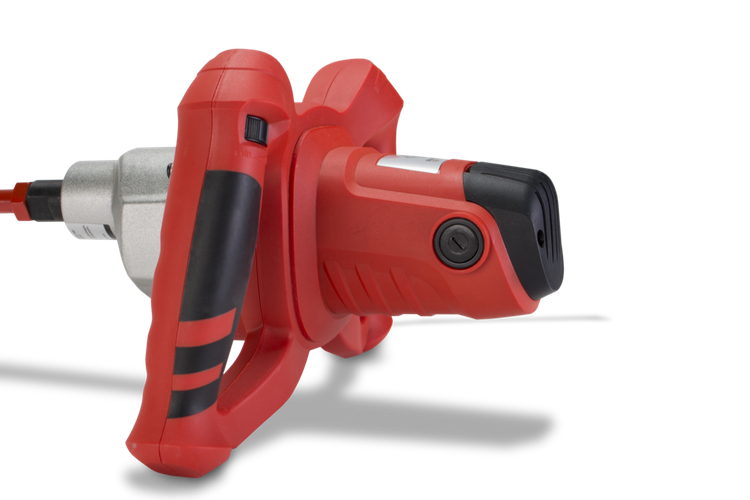 - Silnik o mocy 1200 W jest bardzo wydajny podczas mieszania klejów i zapraw cementowych. W uchwycie zamontowany jest spust oraz elektroniczny regulator obrotów, pozwalający na dostosowanie prędkości podczas mieszania.